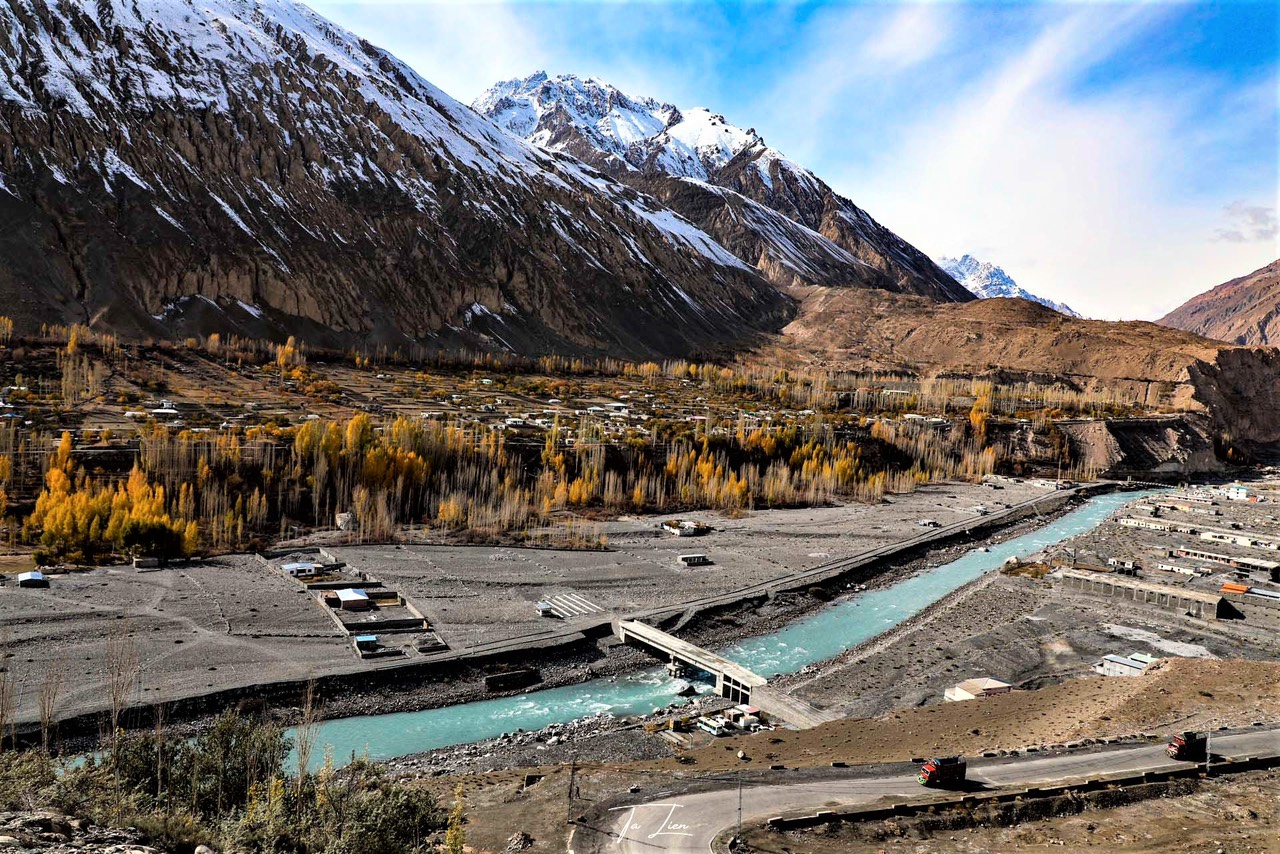 Sau đó đoàn sẽ di chuyển tới thung lũng Hunza (2,5 tiếng). Đoàn bắt đầu đi trên cao tốc Karakoram, là cao tốc cao nhất trên thế giới, dài 1.290 km, được coi là kỳ quan thứ 8 của thế giới. Chuyến du hành trên cao tốc này mở ra trước mắt du khách cảnh quan thiên nhiên kỳ vỹ của Pakistan với những dãy núi hùng vỹ hai bên đường, những ngôi làng nhỏ xinh nằm bên dòng sông Indus uốn lượn mềm mại. Dọc đường đi, quý khách có thể chiêm ngưỡng những chiếc xe tải xuôi ngược trên cao tốc Karakoram được trang trí độc đáo như một nét văn hóa đặc trưng của người Pakistan. Dọc theo cung đường này còn có các di sản của Con đường tơ lụa cổ xưa nối liền Trung Quốc và châu Âu từ hàng ngàn năm trước. Dấu tích của con đường tơ lụa có thể được nhìn thấy rõ ràng trên các vách núi đá bên đường.